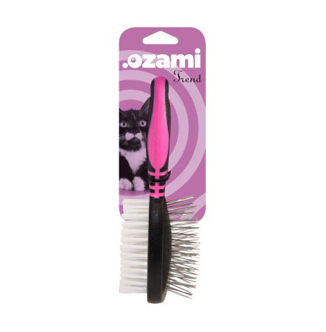 Borte för hund och katt med både piggar och nylonborst. Snygg design och bra att hålla i handen gör arbetet med pälsen lättare. Försedd med stålpiggar på en sida och mjuka nylonborst på andra.