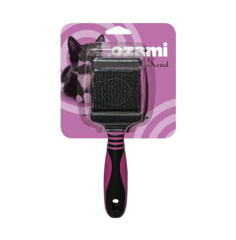 Flexkarda med mjuka piggar av metall. Kardan har två sidor för långa pälsar och för päls som fäller. Storlek på kardans borstdel är 5,5x4,5cm. Längd på hela borsten 19,5cm