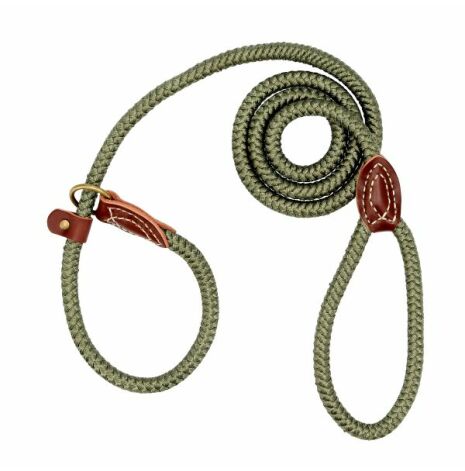 Elegant retrieverkoppel med läderdetaljer. Läderdetaljerna har läckra, grova stickningar. Lädret är vegetabiliskt garvat.