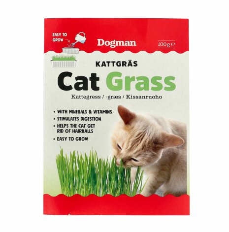 Kattgräs brukar uppskattas av de flesta katter, särskilt innekatter som inte har möjlighet att gå ut. Kattgräset är en källa till fiber och hjälper katten att bli av med hårbollar genom att binda pälsen som katten får i sig när den tvättar sig. Enkelt att odla hela året, bara ta ur boxen och vattna, låt stå i fönster eller annan ljus och varm plats, håll bädden fuktig genom att vattna med ca 1 dl vtn var 3-5;e dag. Färogt att äta nä'r det är ca 5 cm högt.
