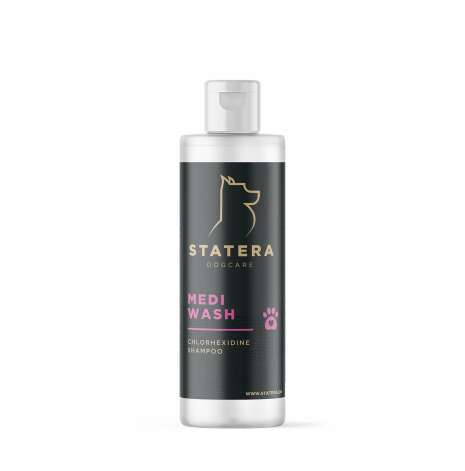 Rengörande och effektivt klorhexidinschampo för hund och katt. Den noggrant utvalda sammansättningen av STATERA Medi Wash bidrar med en effektiv rengörande effekt, samt en naturlig minskning av oönskade bakterier. STATERA Medi Wash är anpassad efter hundens naturliga pH-värde och med innehållet av Aloe Vera och Pro Vitamin B5 bidrar Medi Wash även med en närande och återfuktande effekt. STATERA Medi Wash är utvecklad för skonsam och effektiv tvätt av sår, skrapsår och andra typer av irritationer och utmaningar i hundens hud.