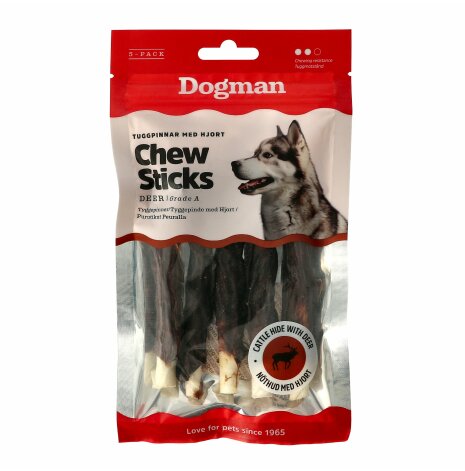 Tuggpinnar för hund med smarrigt hjortkött lindat utanpå. Inga tillsatser, spannmålsfritt och utan socker. Dessa kommer de flesta hundarna att gilla. Även de mest kräsna.