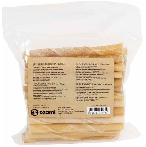 Tuggpinnar runda 125x5mm Small är tillverkade av 100% råhud. Det är lindad råhud som torkas och inga andra tillskott har tillförts.