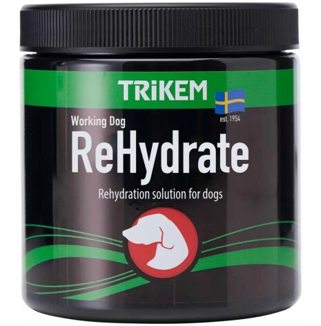 Working Dog ReHydrate ges till hundar för effektiv återhämtning efter vätskeförlust. Hundar som tränar eller utför annan aktivitet i varma temperaturer förlorar vätska via flåsning/hässjning. Hundar kan också drabbas av vätskebrist och uttorkning pga. kräkningar eller diarré. ReHydrate innehåller de elektrolyter hunden förlorar i samband med vätskeförlust. Ett tillskott av ReHydrate kan därför bidra till snabbare återhämtning och som extra hjälp i värmen. ReHydrate är i pulverform och blandas i hundens dricksvatten.